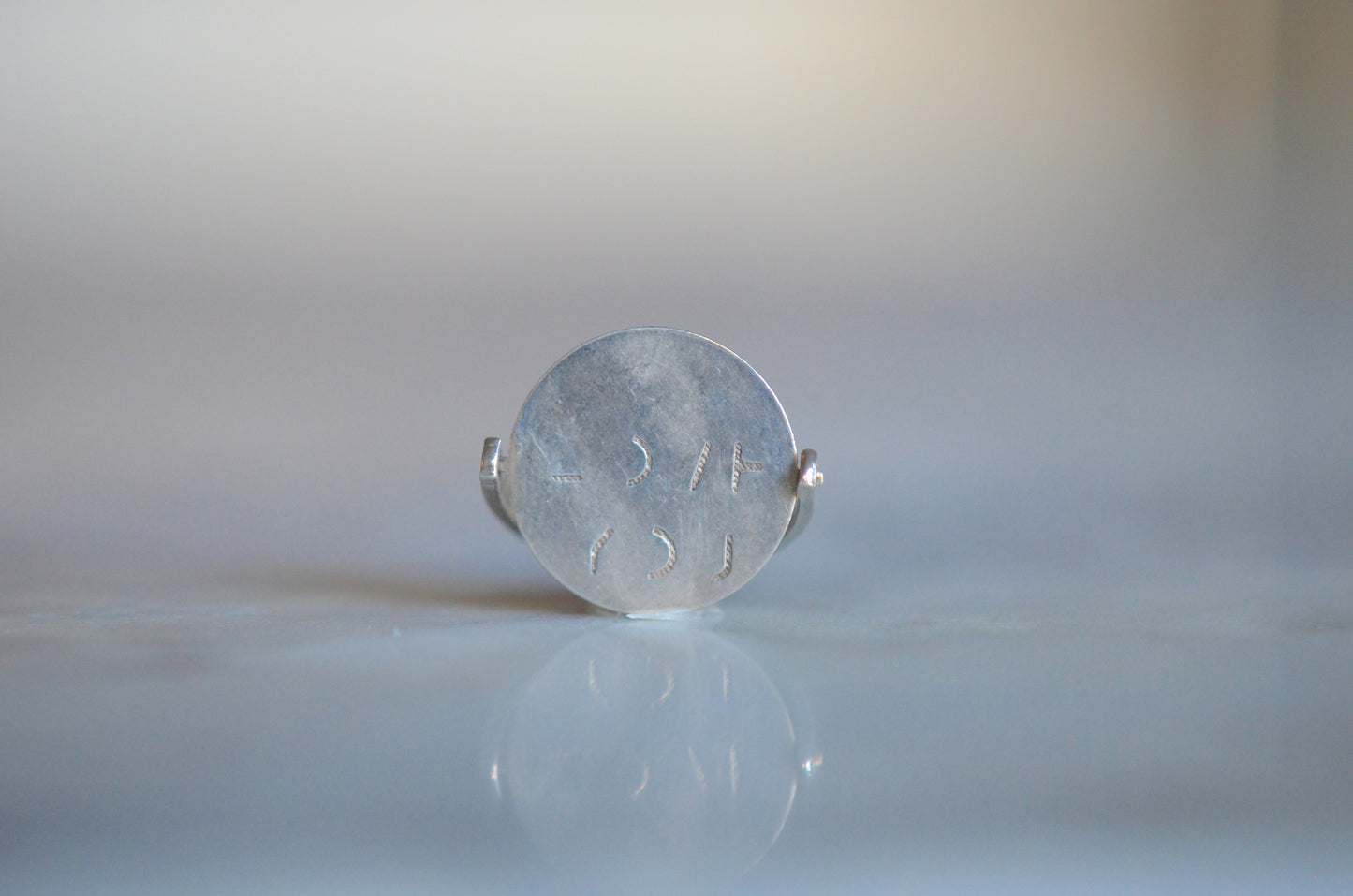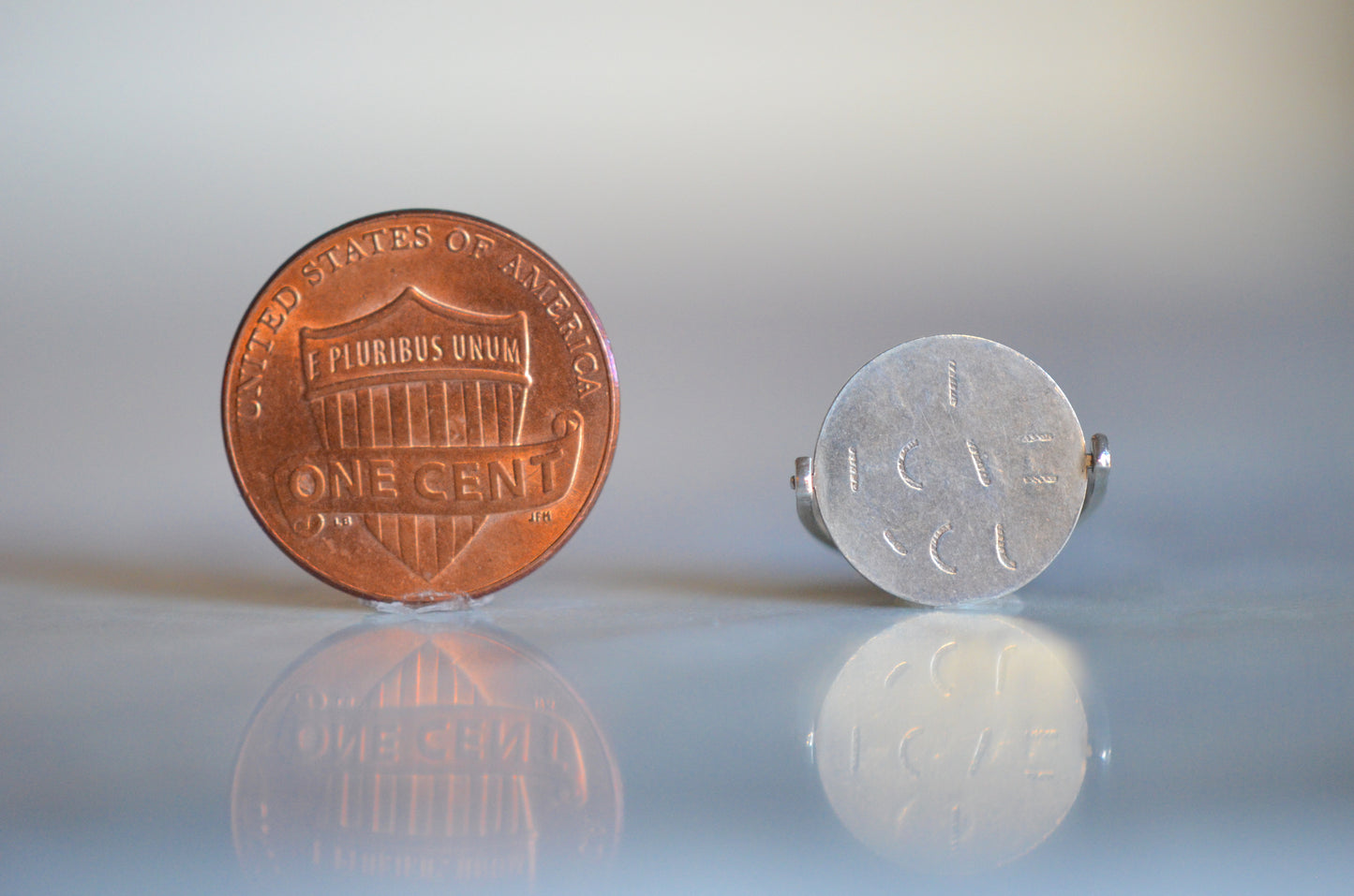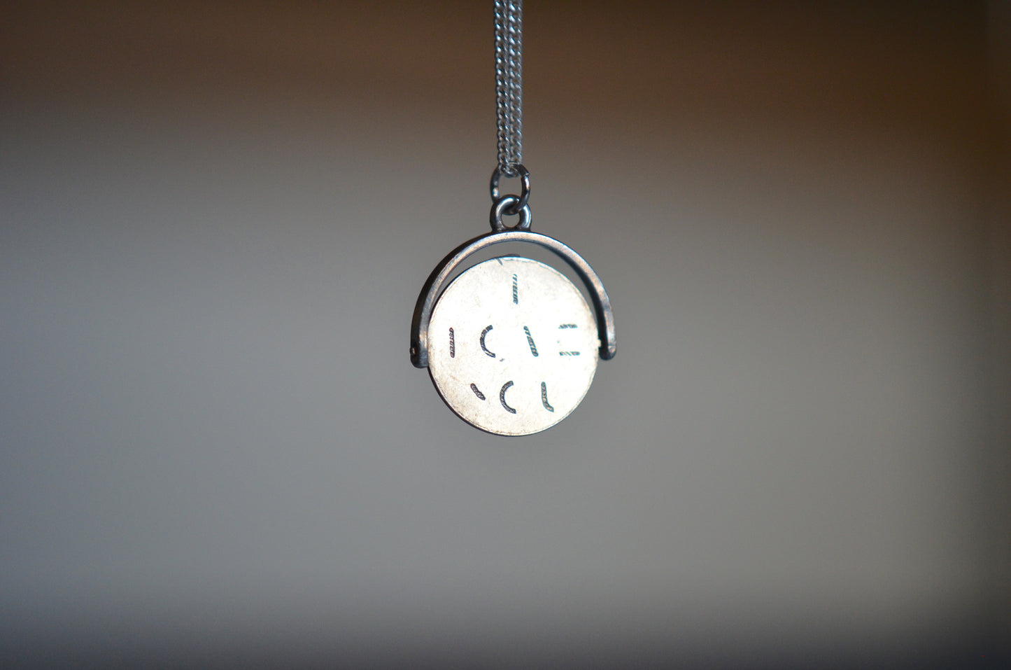 Straight from the mid-century charm craze, these delightful pieces can be added to your own charm bracelet or necklace, or worn alone on a chain to give them all the focus. Each side of the disc bears only a portion of each letter, creating a secret message that is only revealed when the disc is spun and in motion.