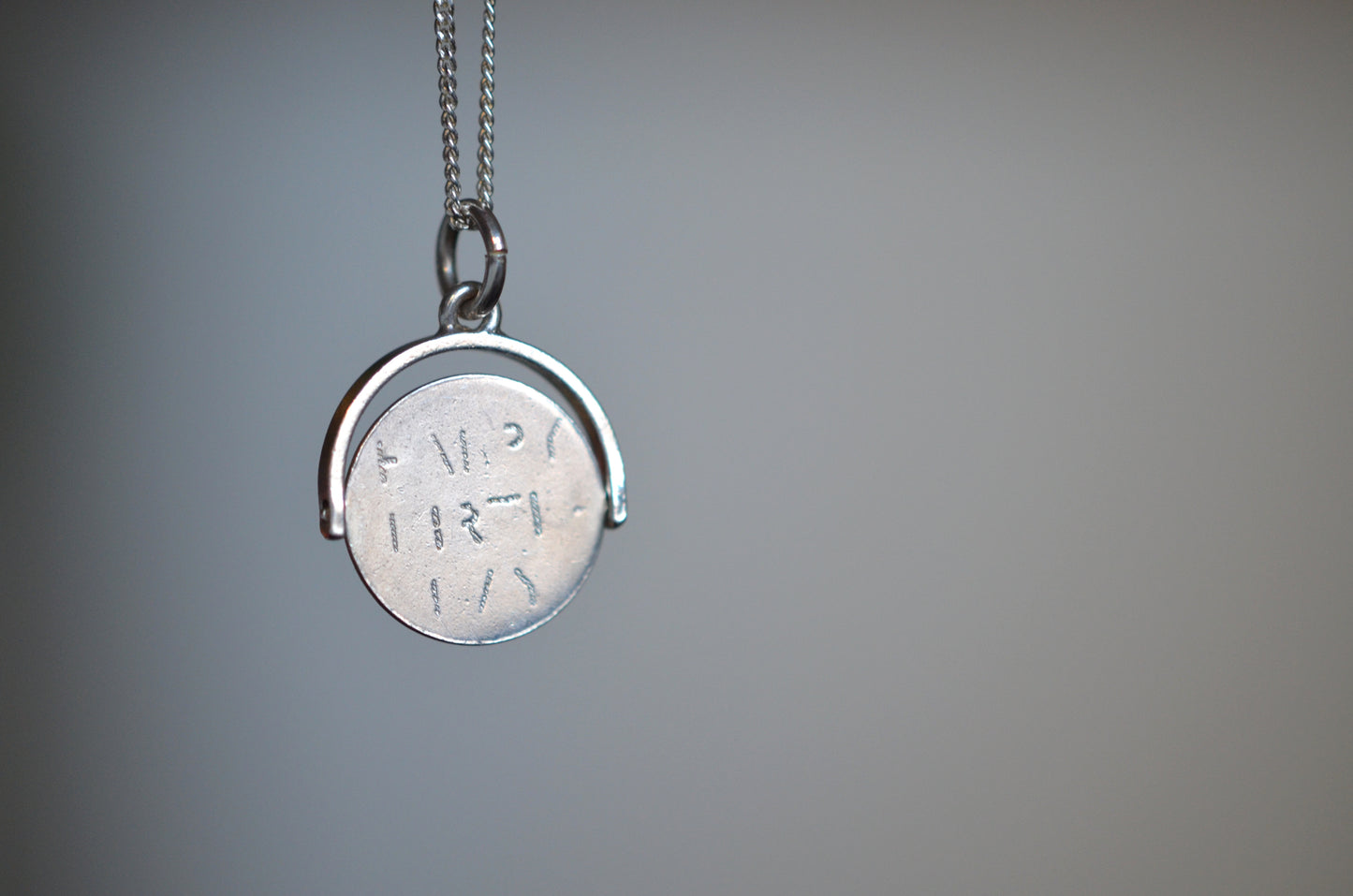 Straight from the mid-century charm craze, these delightful pieces can be added to your own charm bracelet or necklace, or worn alone on a chain to give them all the focus. Each side of the disc bears only a portion of each letter, creating a secret message that is only revealed when the disc is spun and in motion.