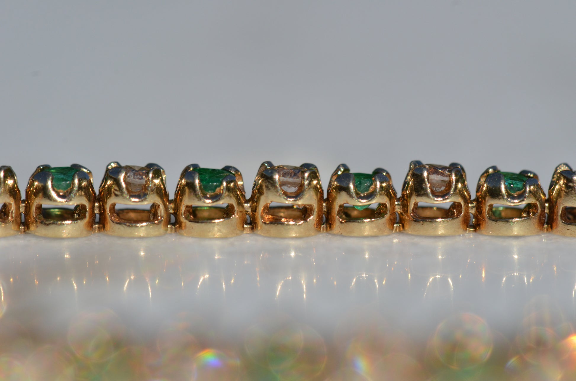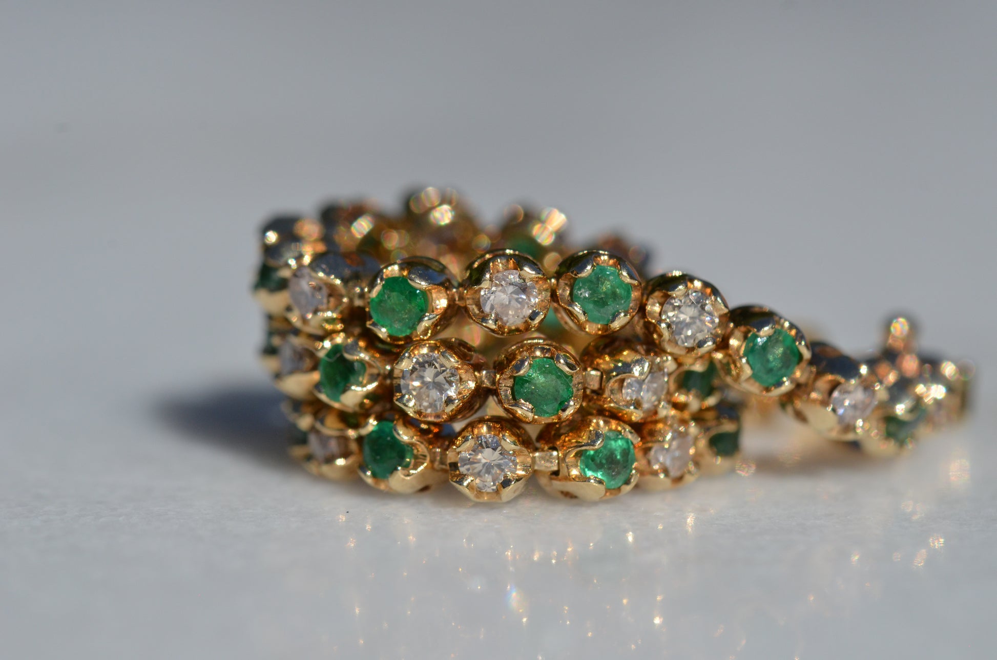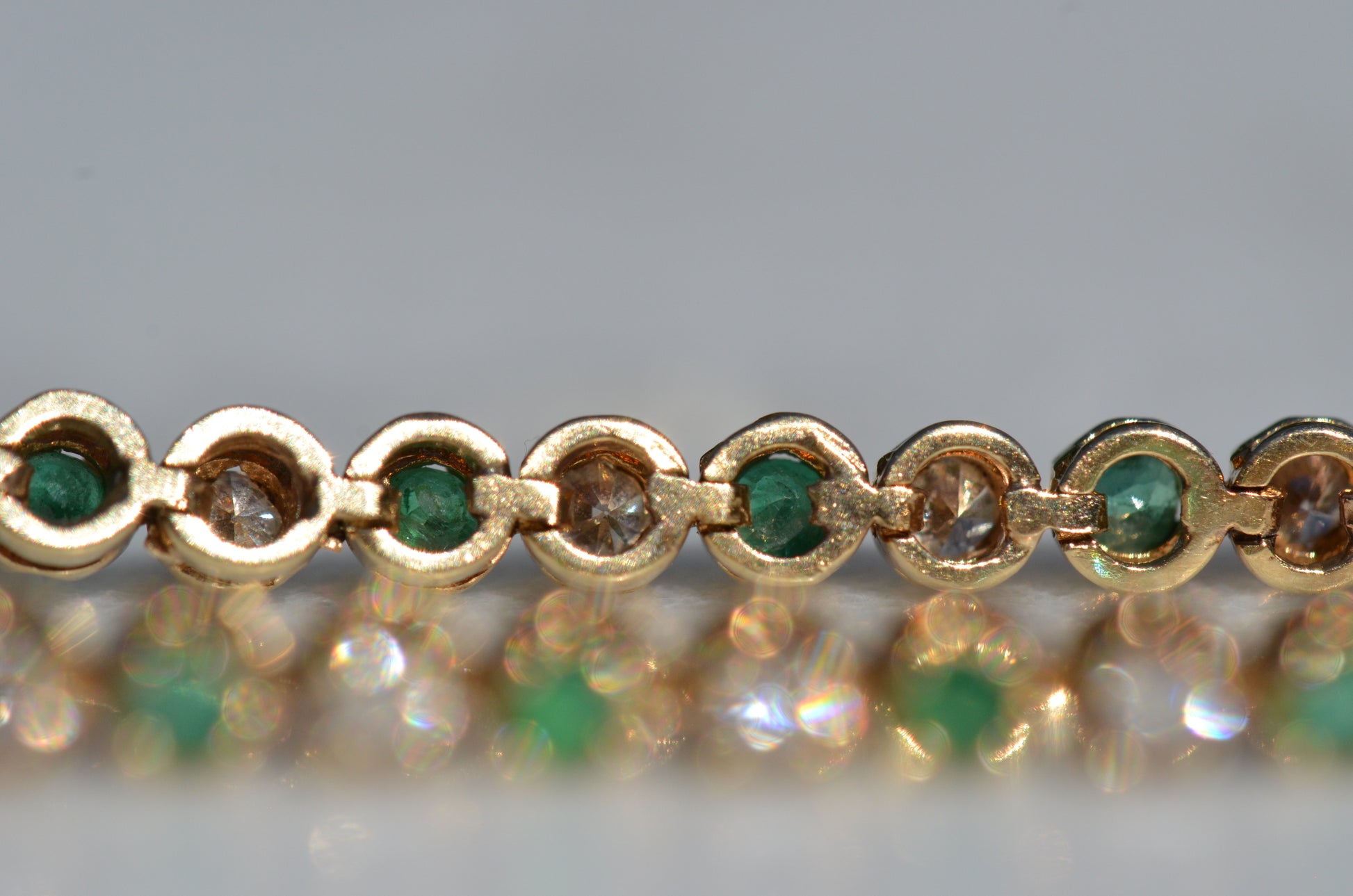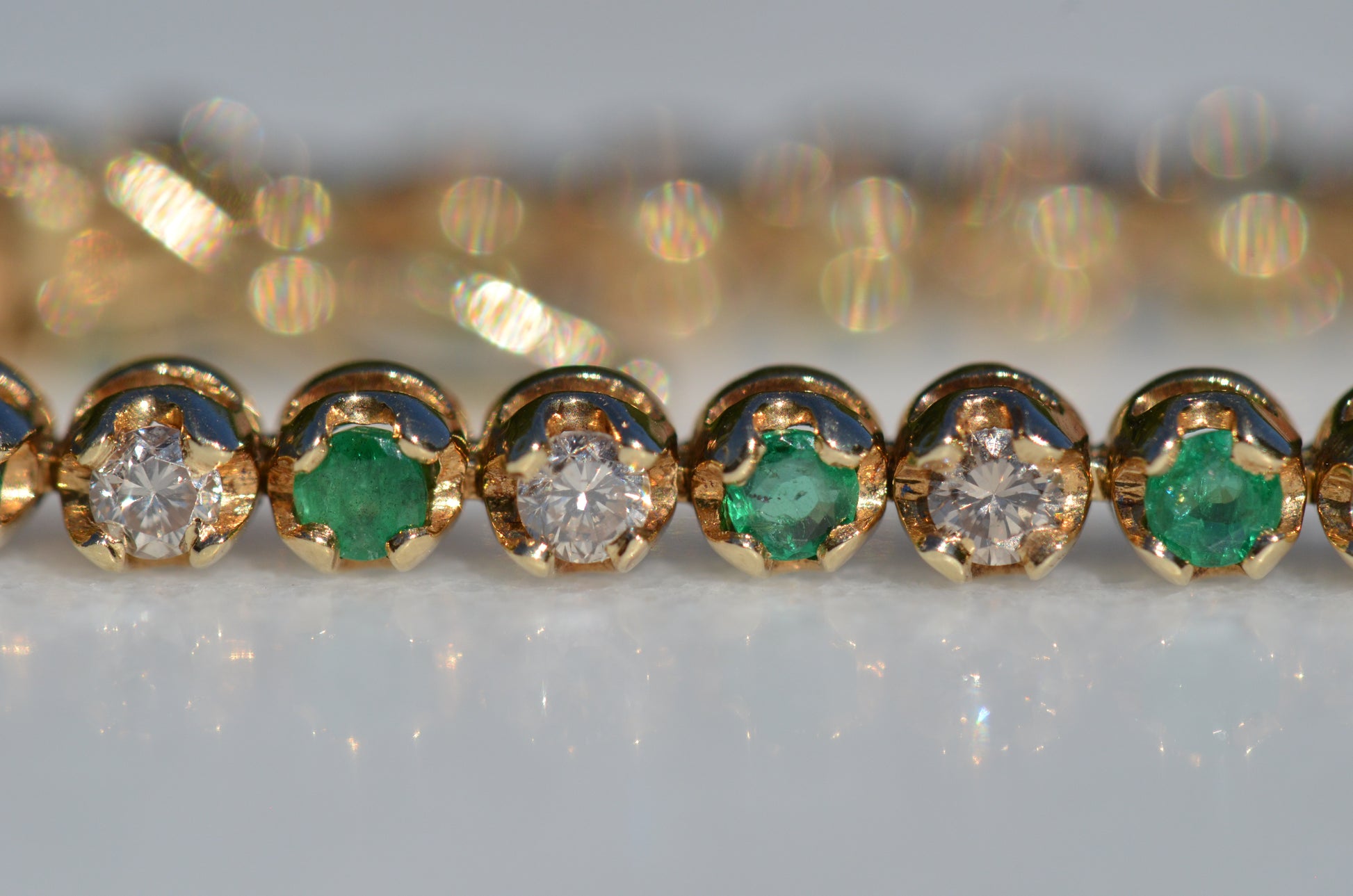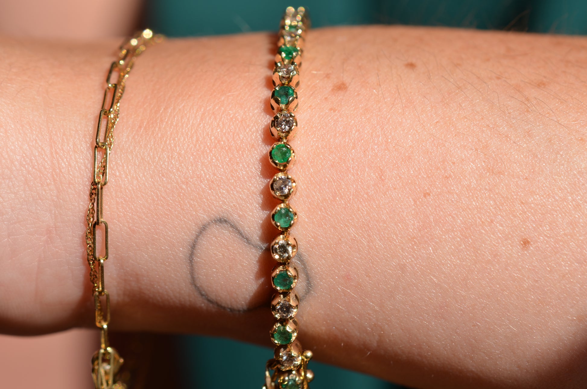 While stone-set line bracelets have been popular since the early 20th century, they enjoyed a massive boost in popularity in the late 1970s following the introduction of the term "tennis bracelet," thanks to superstar Chris Evert. This saw a surge in creativity in the 1980s and 1990s when it came to designs and styles, in both classic diamond and colourful gemstone iterations. This gorgeous piece alternates emerald and diamond to dazzling effect.