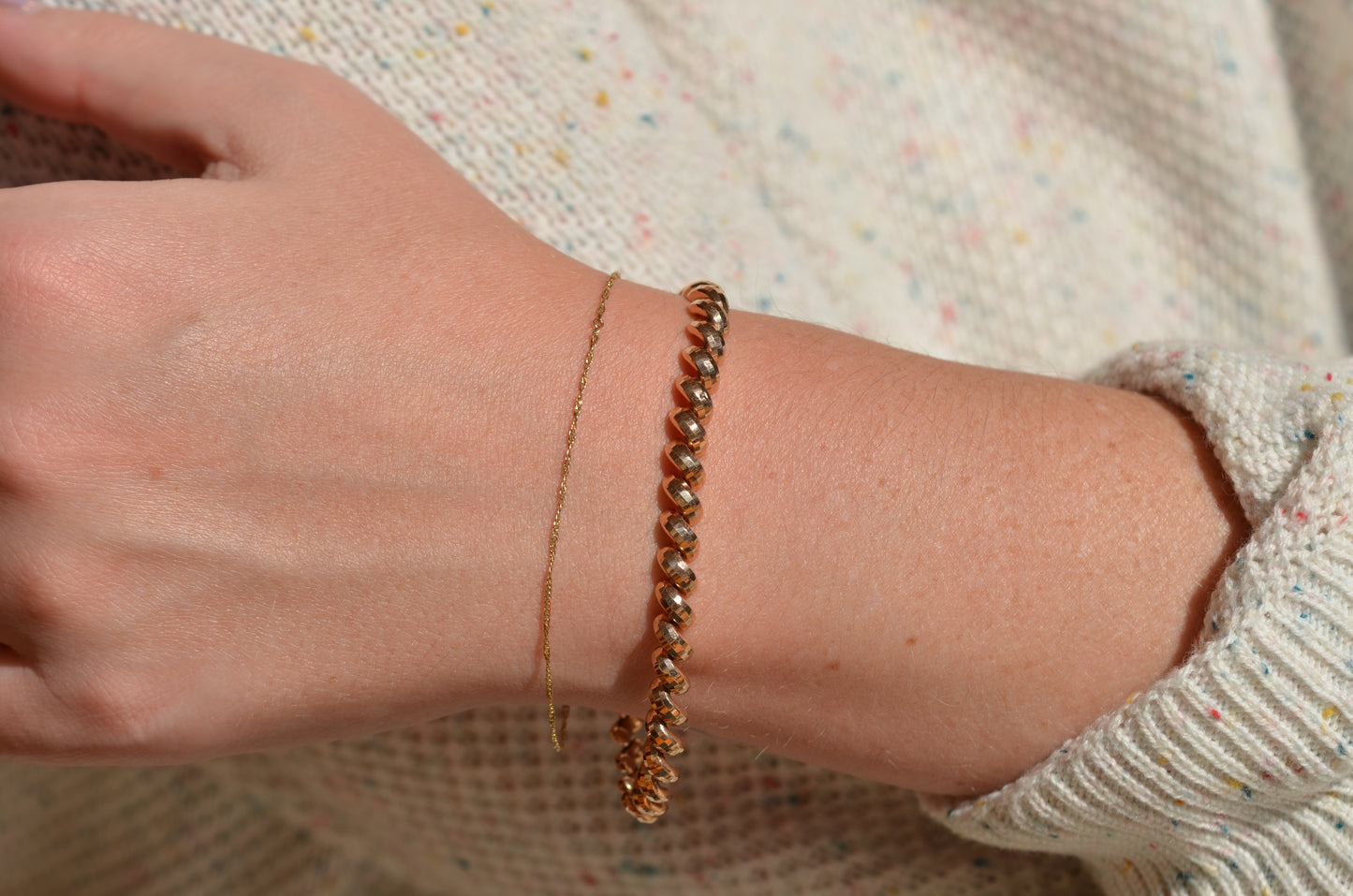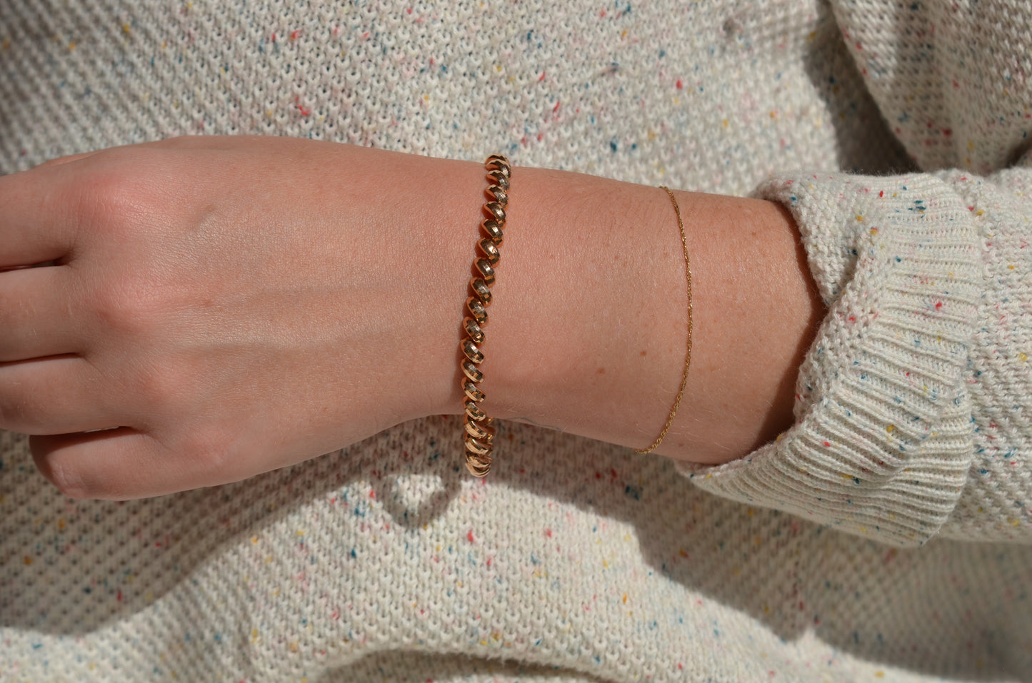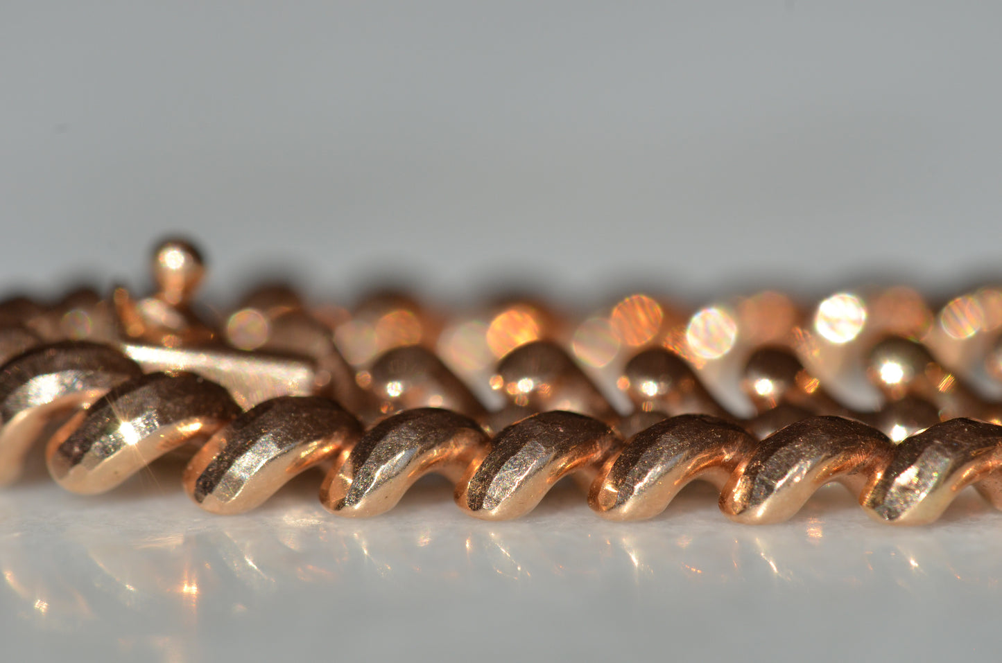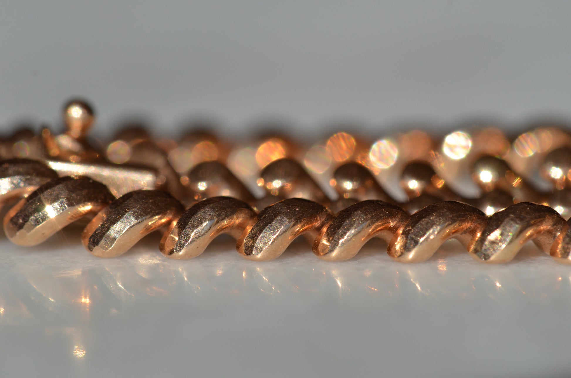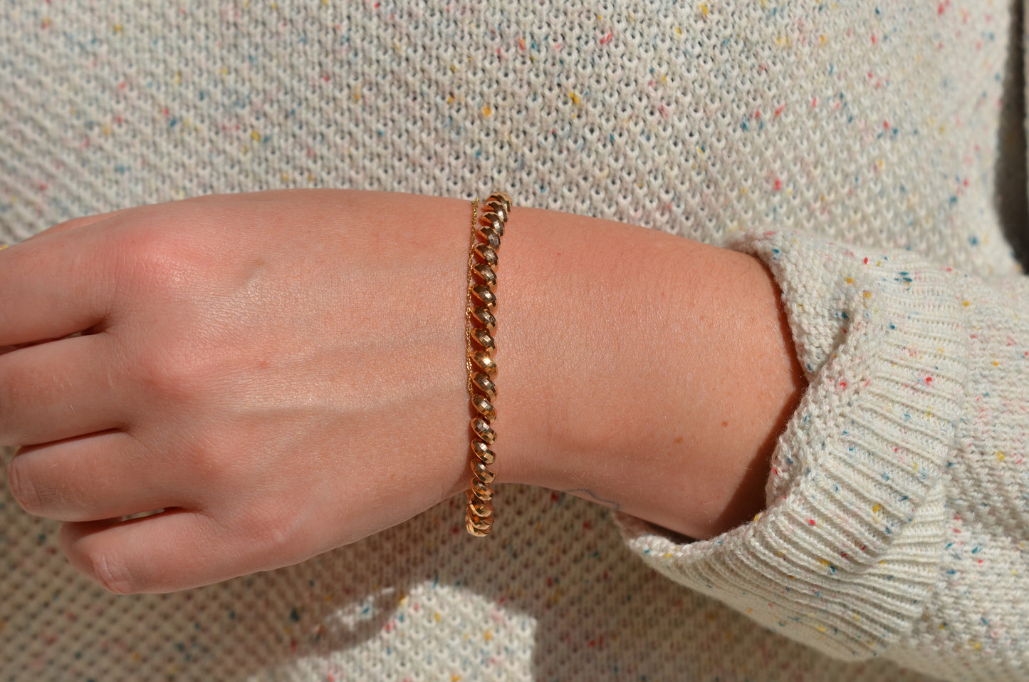 A gorgeous and covetable San Marco style bracelet with shimmering facets and perfectly puffed links. Affectionately called "macaroni" bracelets for their resemblance to the iconic noodle, this style of link was a mainstay of the 1980s and 1990s and has made a fierce comeback. To be expected from their era, they provide a lot of look for a more minimal weight, with hollow formed links, but by no means feel insubstantial. You'll love the way the sun hits these curves and will no doubt be wearing it day in and day out.