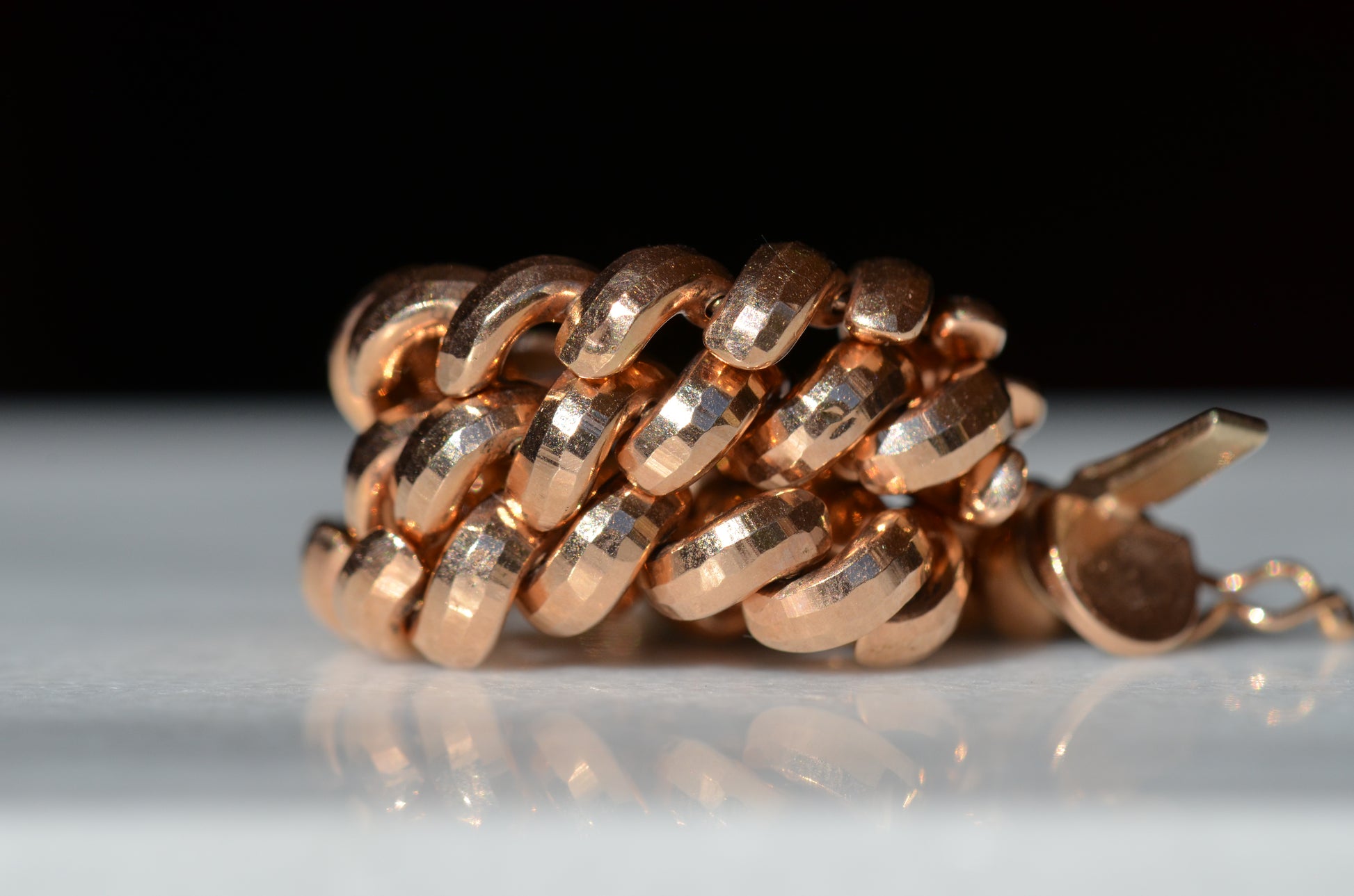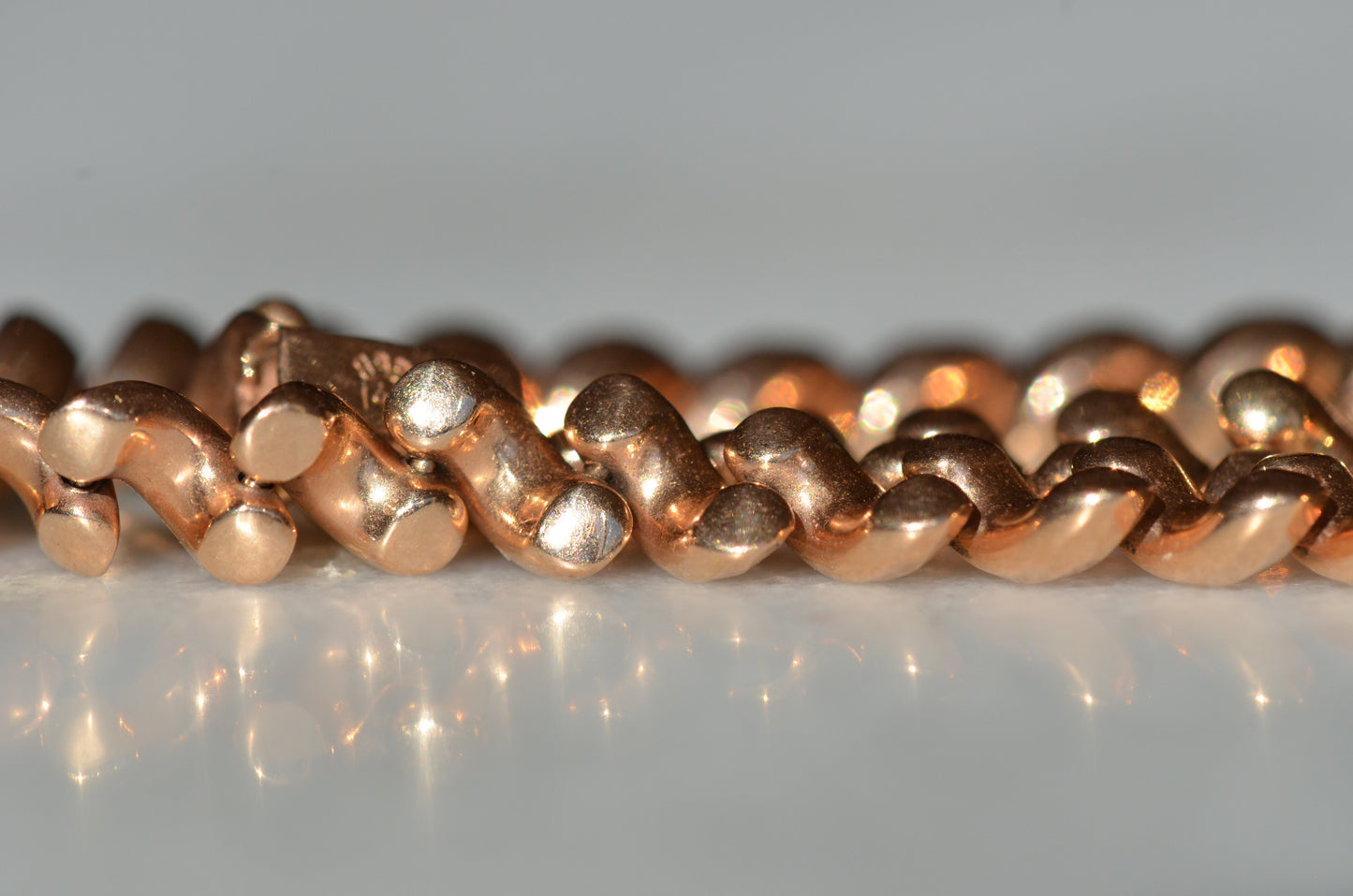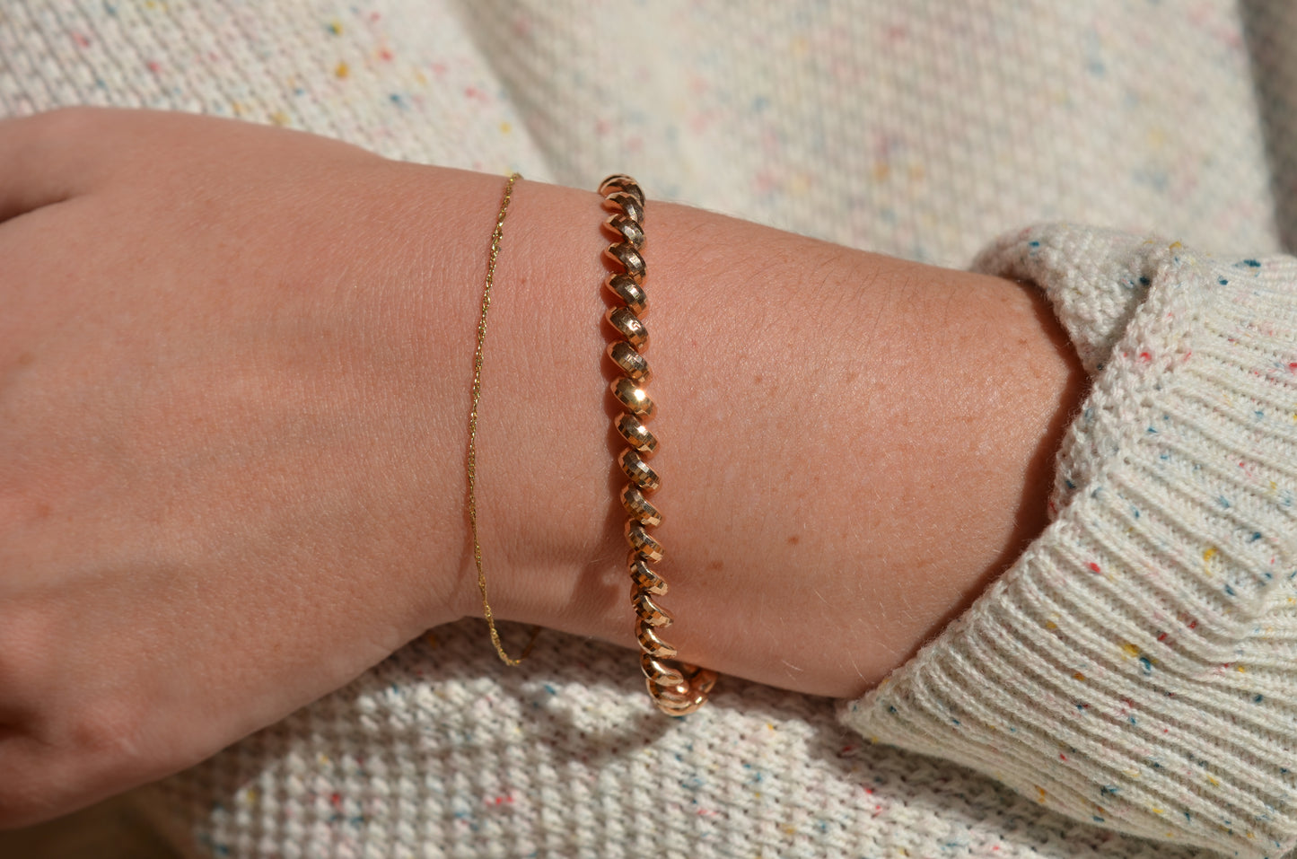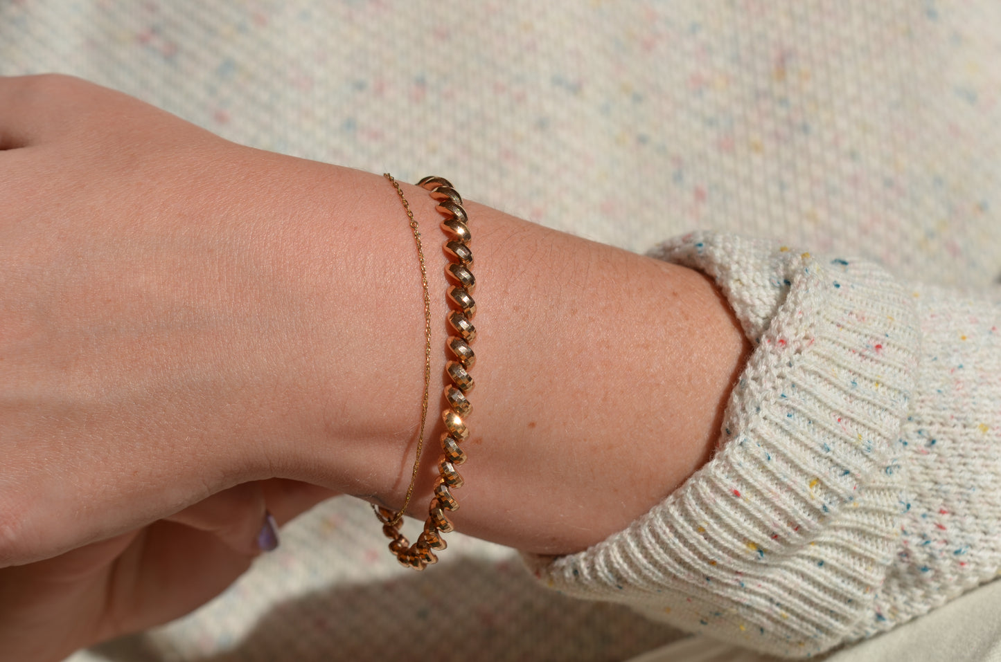 A gorgeous and covetable San Marco style bracelet with shimmering facets and perfectly puffed links. Affectionately called "macaroni" bracelets for their resemblance to the iconic noodle, this style of link was a mainstay of the 1980s and 1990s and has made a fierce comeback. To be expected from their era, they provide a lot of look for a more minimal weight, with hollow formed links, but by no means feel insubstantial. You'll love the way the sun hits these curves and will no doubt be wearing it day in and day out.