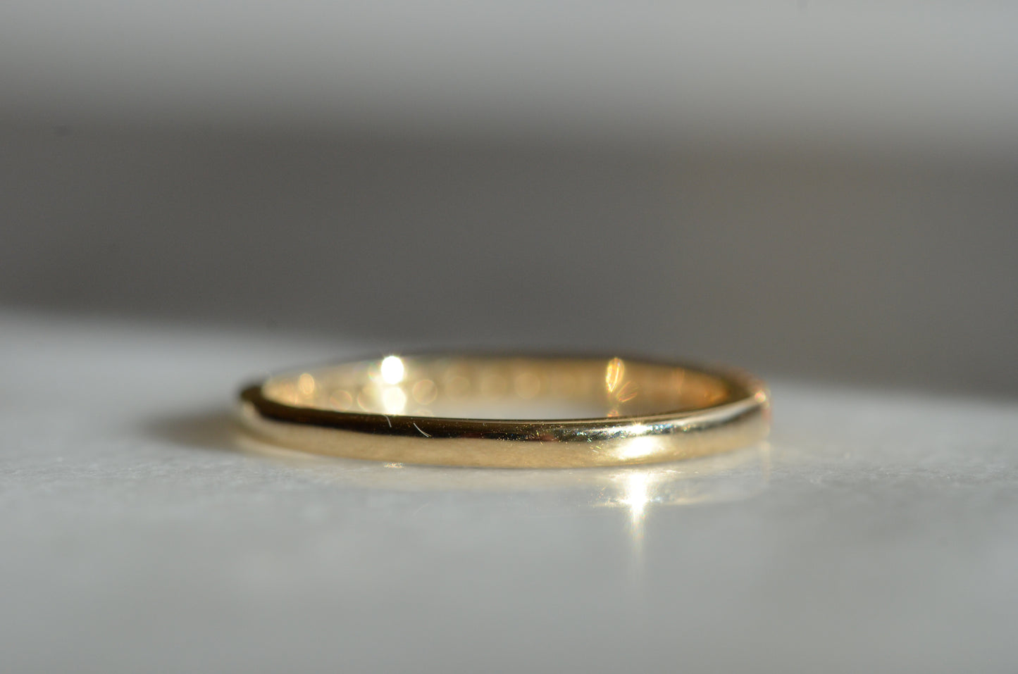 • Face of ring measures 1.8mm wide, with a rise of 2mm; back of band measures 1.8mm wide and 1.3mm thick