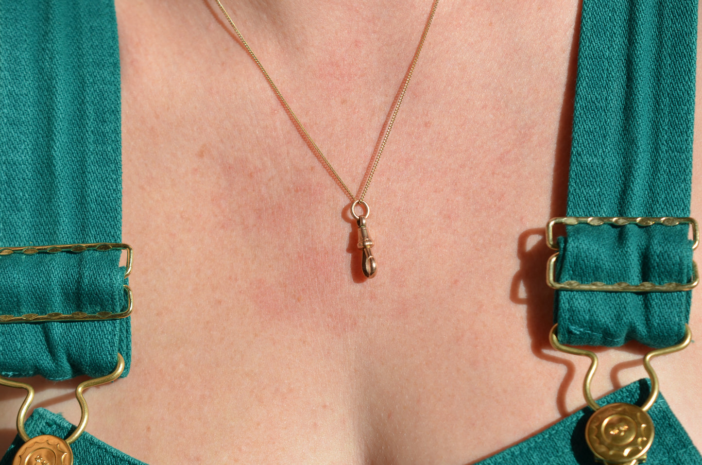 These ultra versatile clips, salvaged from old watch chains, are the perfect way to add multiple charms to a single necklace or shake up the closure on a chain. Securely springing open and shut, the lever on the clasp makes it easy to slide charms on and off to change the look, similar to a split ring but easier to manage. The ring at one end easily slides on a chain, or a jump ring can be added to secure it to the end of your favourite old chain.