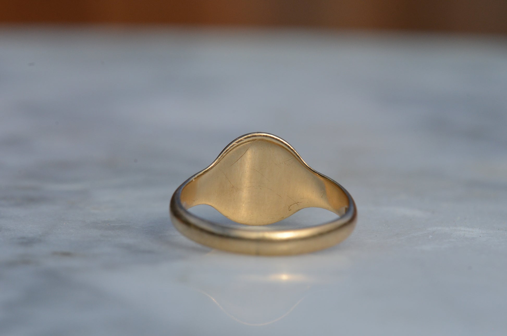 • Face of ring measures 10.5mm wide, 9.5mm across with a rise of 1.1mm; back of band measures 2.1mm wide and 1mm thick