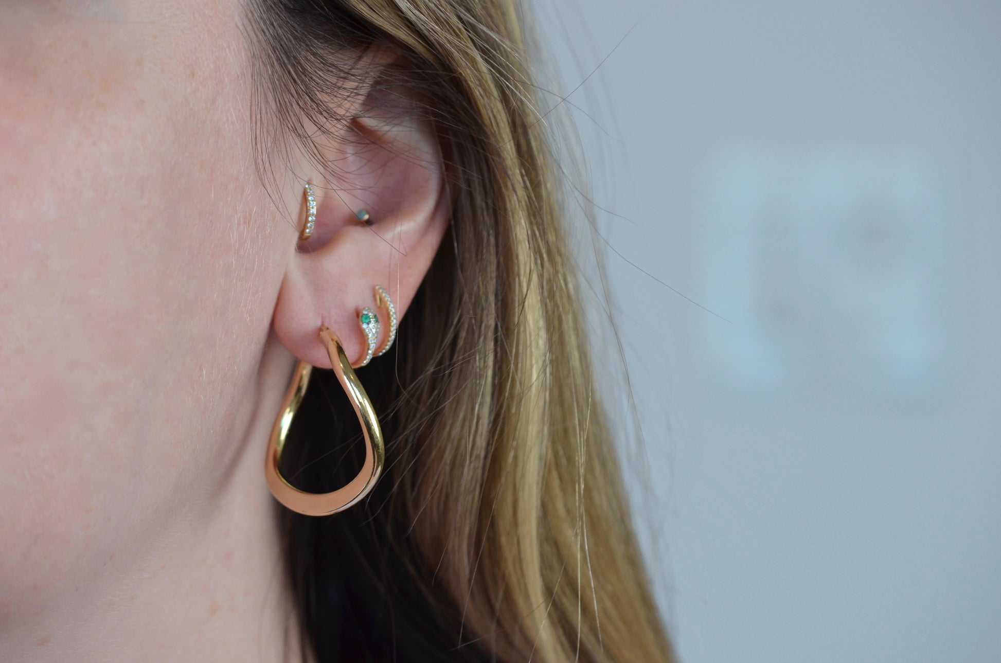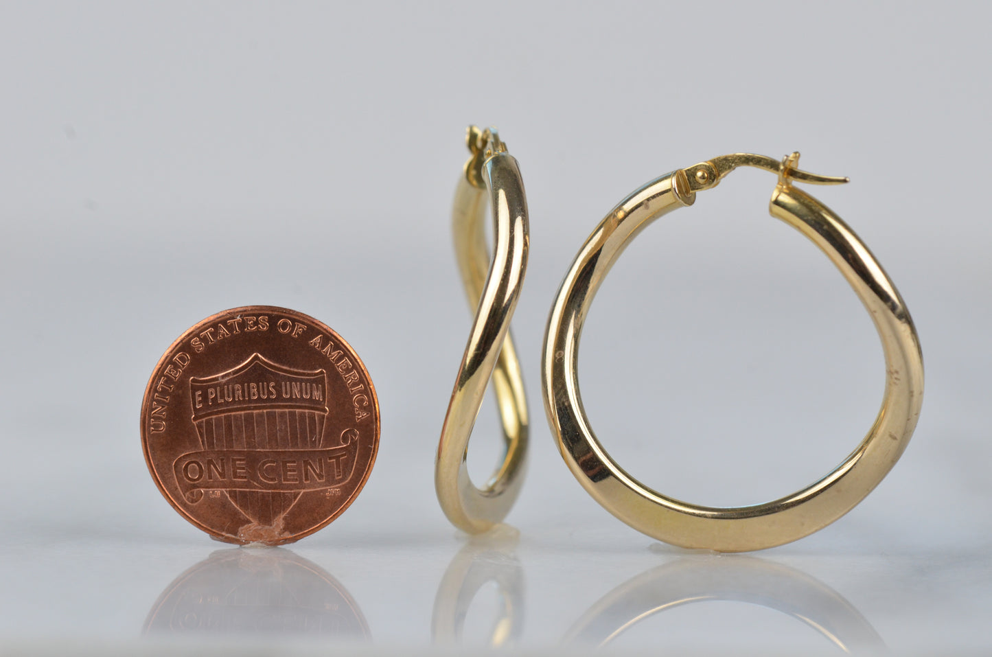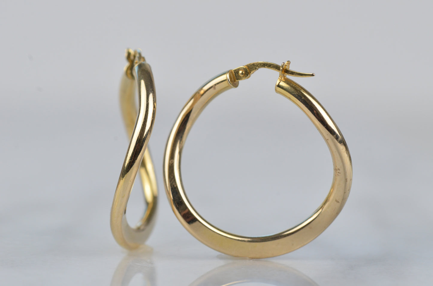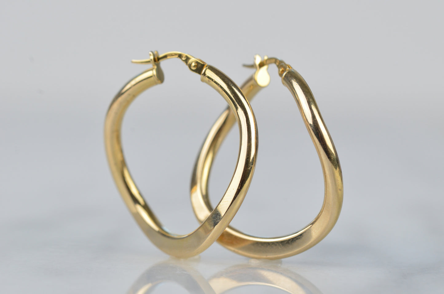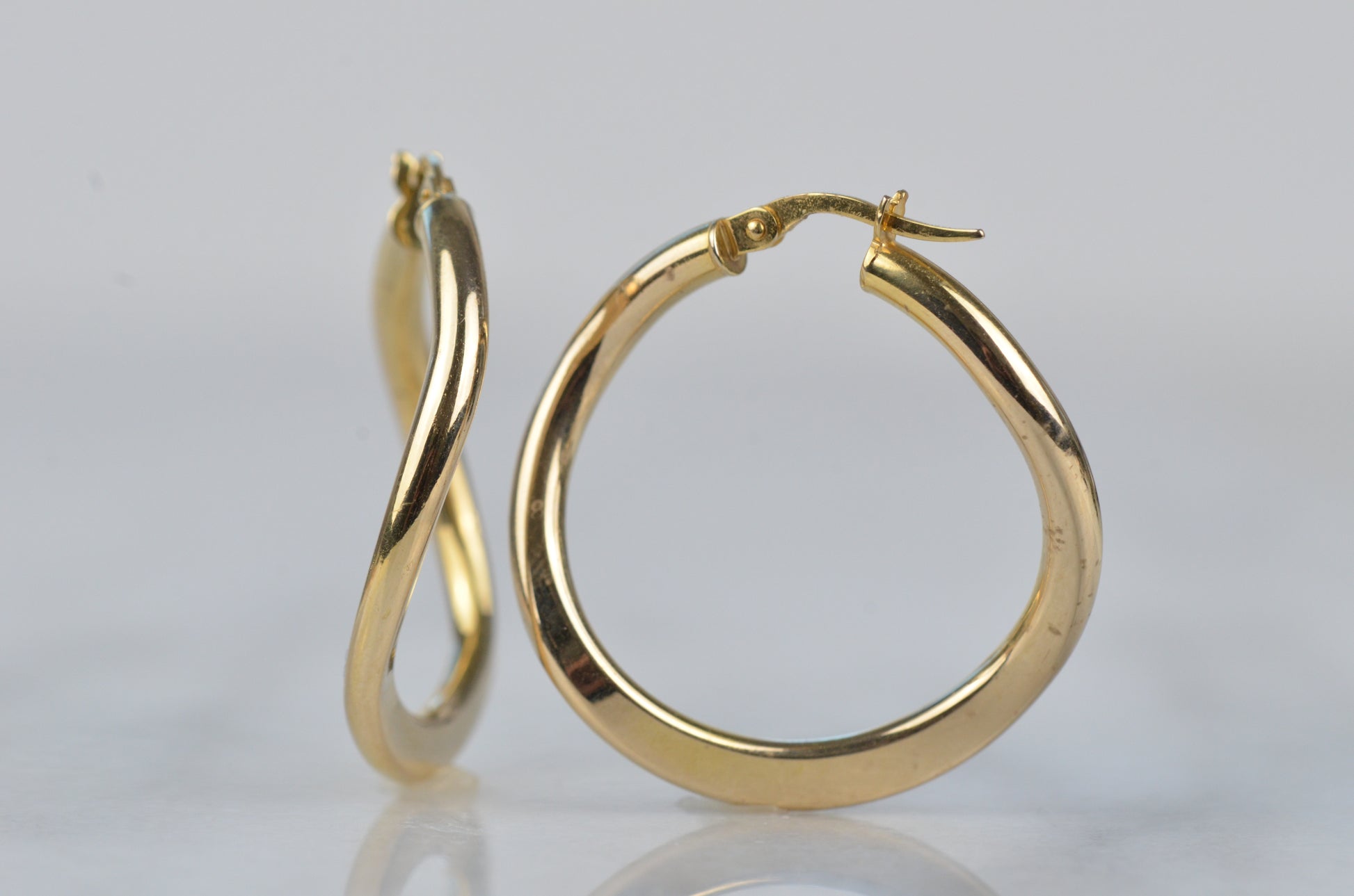 Bold and sensual, these hoops feature an undulating take on a classic round gold hoop. Hollow fabrication means they're lightweight in the ear and comfortable to wear all day (and all night), but thick walls give them a sturdy, rigid feel that compliments their curves.