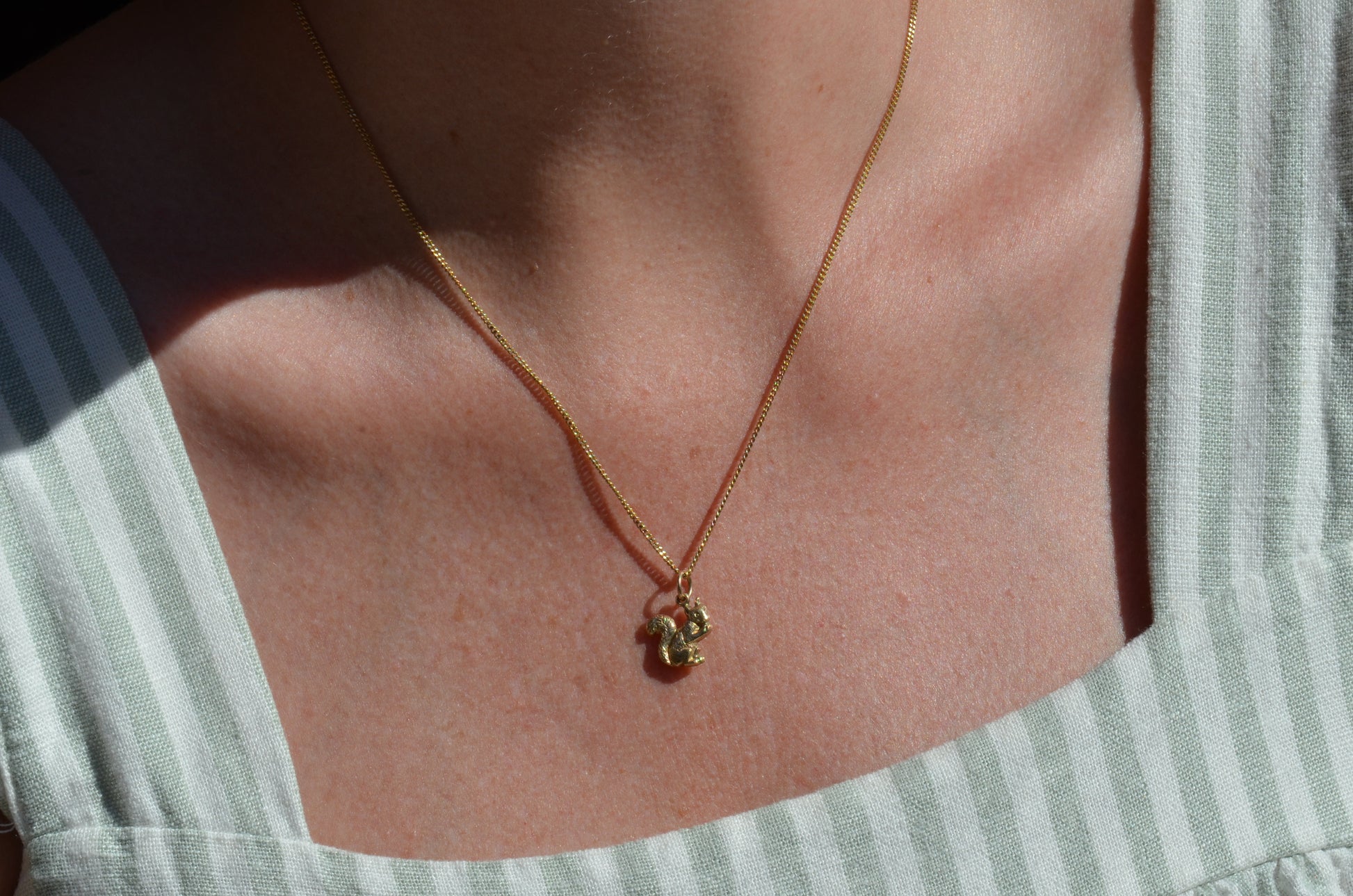 Lovely and detailed, this little squirrel - modeled lifting a hard-won nut to mouth - represents hard work and preparedness, foresight and resourcefulness. While it's easy to see their playful nature as they chase one another 'round tree trunks, they balance fun with a steady collecting and storing, an eye to the future and survival.